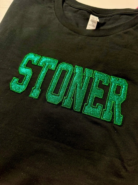 Embroidered glitter STONER top