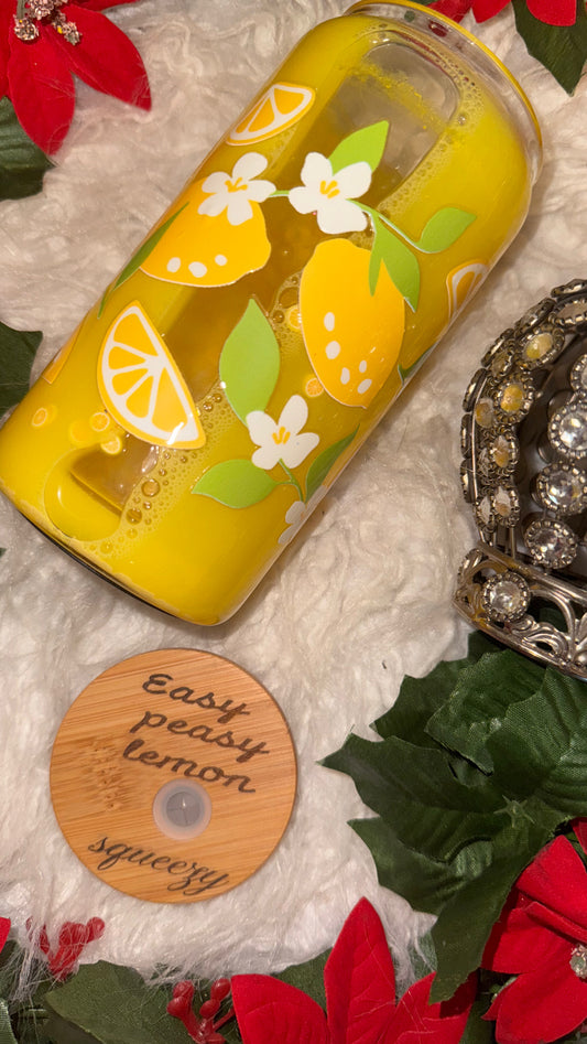 Lemon snow globe glass can w/ engraved lid ready to ship