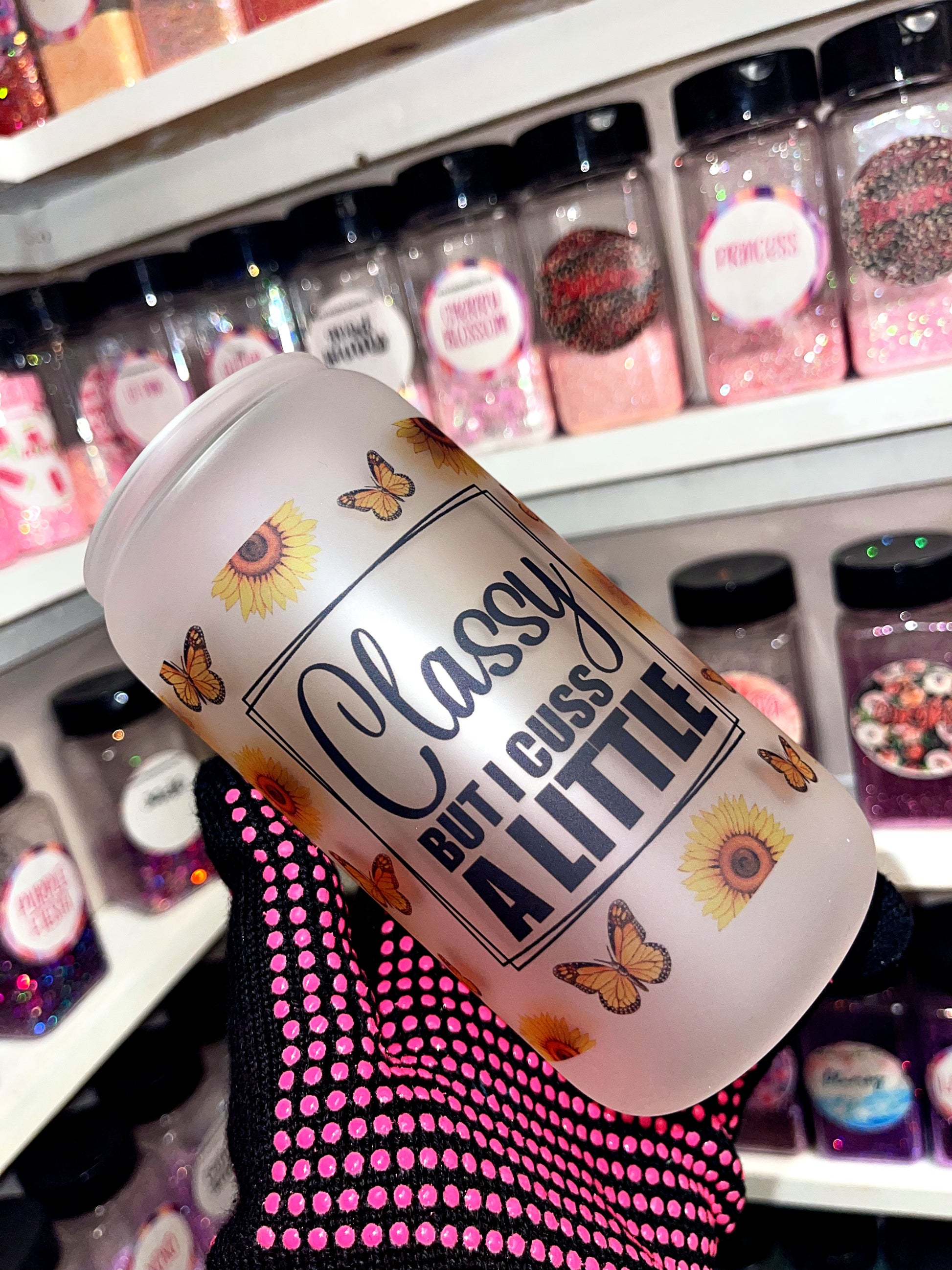 How beautiful!!! 160oz glass can with bamboo lid & straw. Slay the day with this cutie!