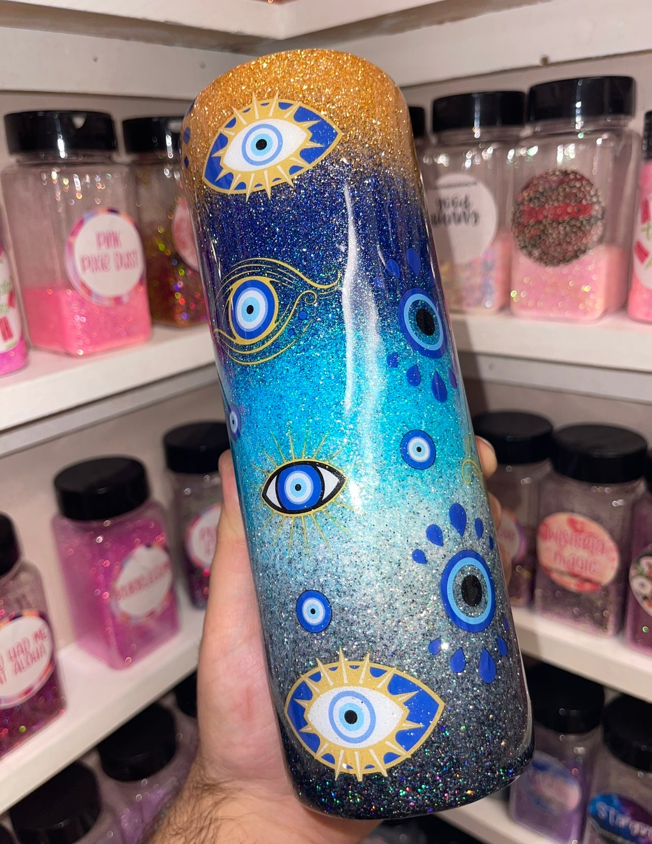 Full evil eye wrap with a gorgeous 5 color ombré to match. All epoxied 3-5 times to give you a life long tumbler.
