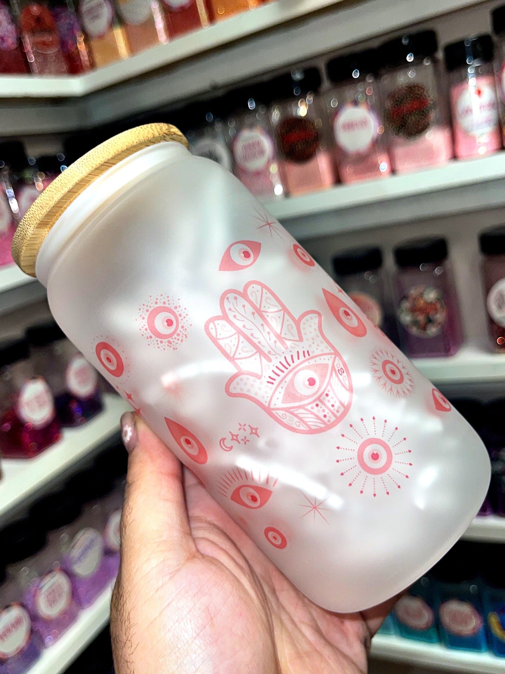 Pink Evil Eye glass can sublimation