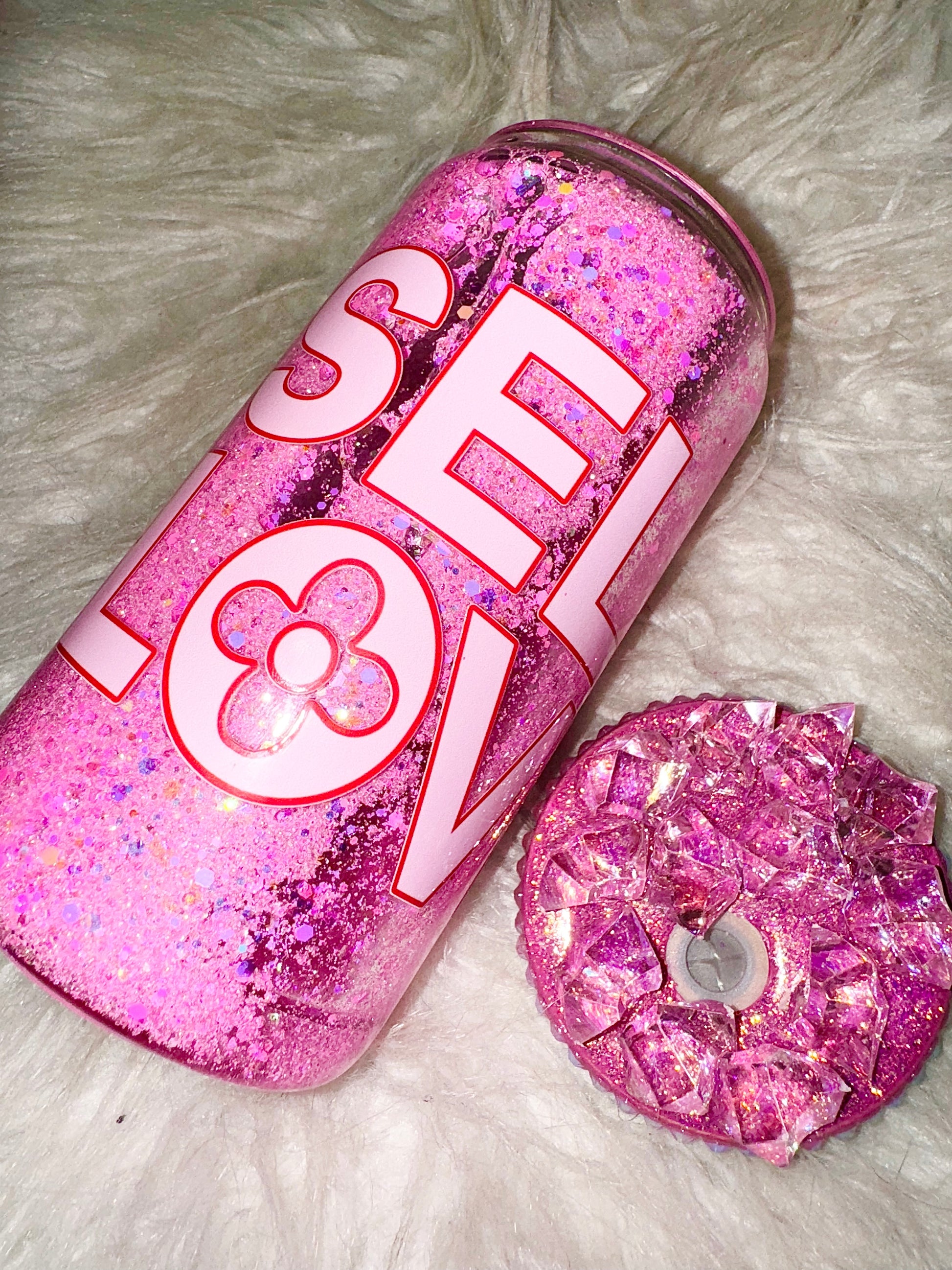 SELF LOVE ready to ship snow globe glass can w/ matching lid and silicone bottom